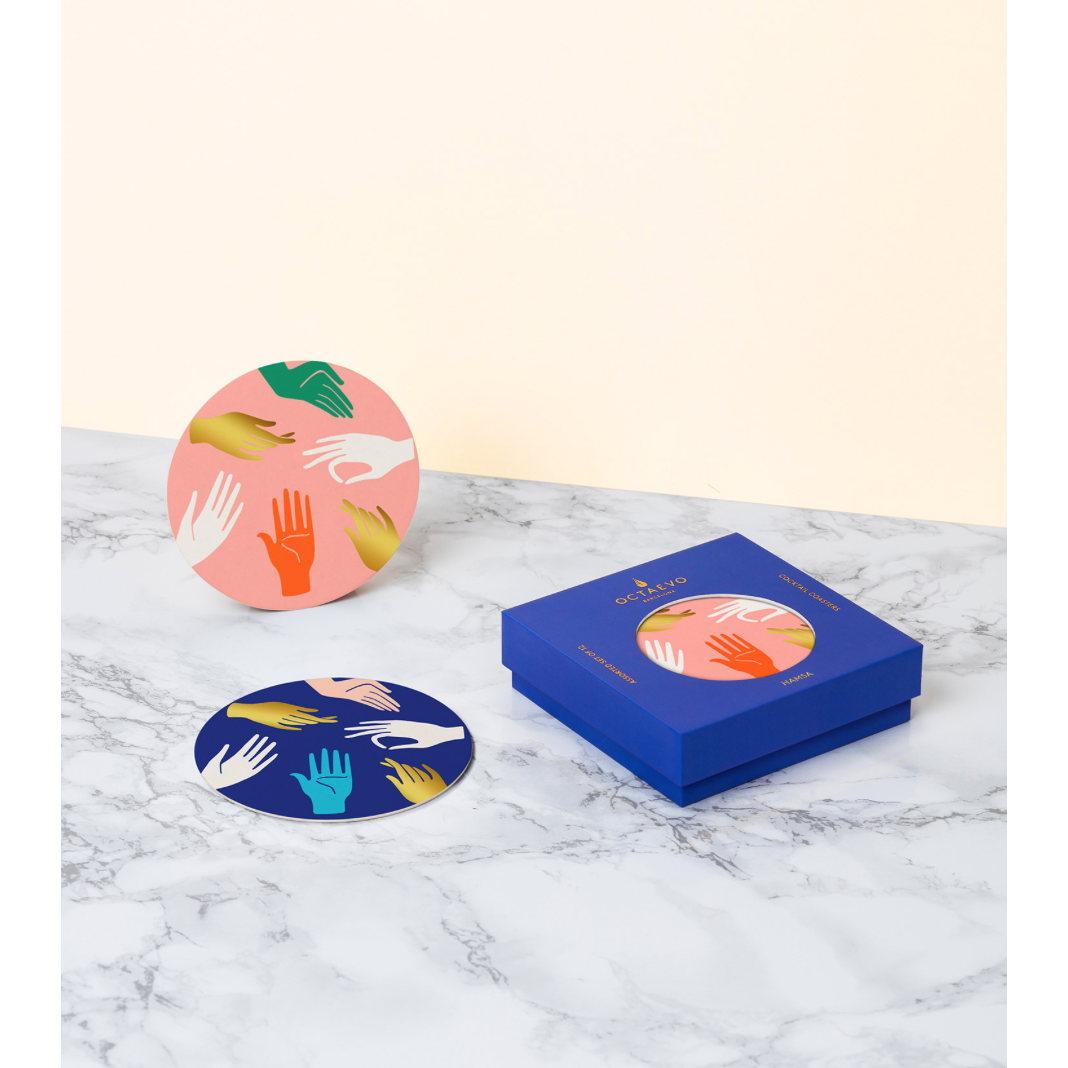 Made of durable and water resistant paper, each side of the coasters hosts the print in a different colour. Adorned with gold foil accents and packaged in a luxurious gift box, they are perfect for keeping surfaces dry in a stylish way - and will definitely make you shine at your next social event.