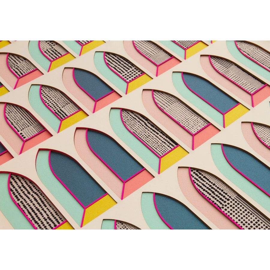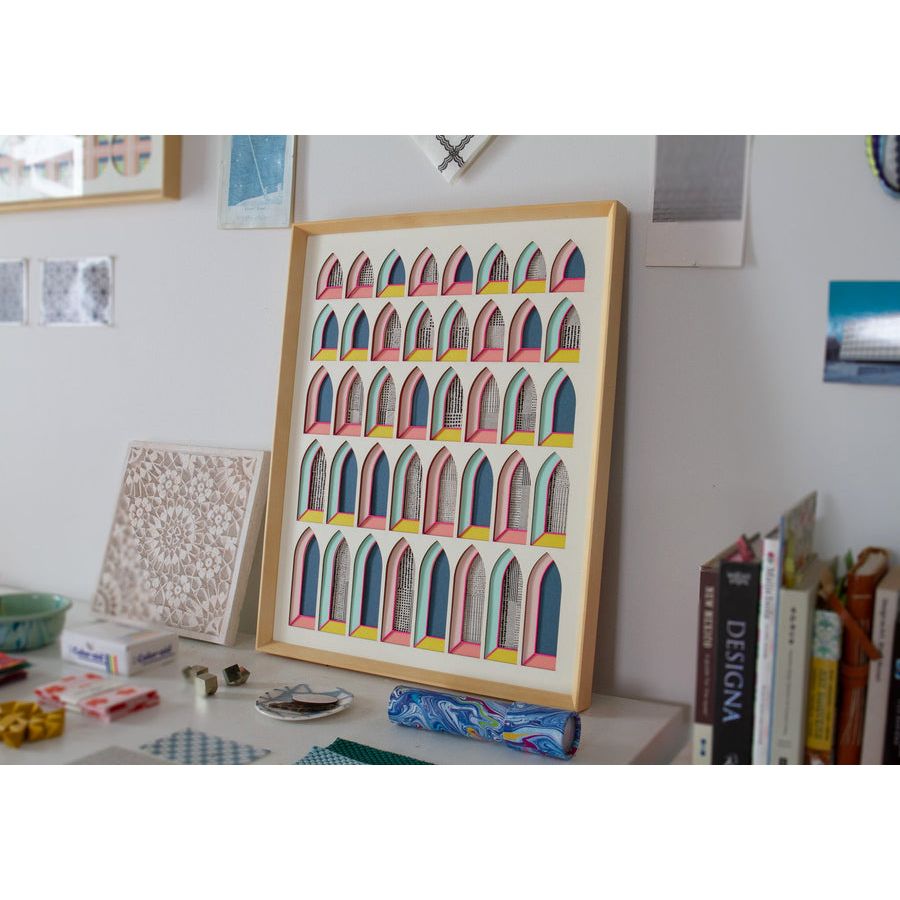 An ogival arch is a pointed arch typical in Islamic architecture. This papercut is inspired by trips to Morocco and Spain, and the incredible ornamentation in the Moorish architecture I saw there.