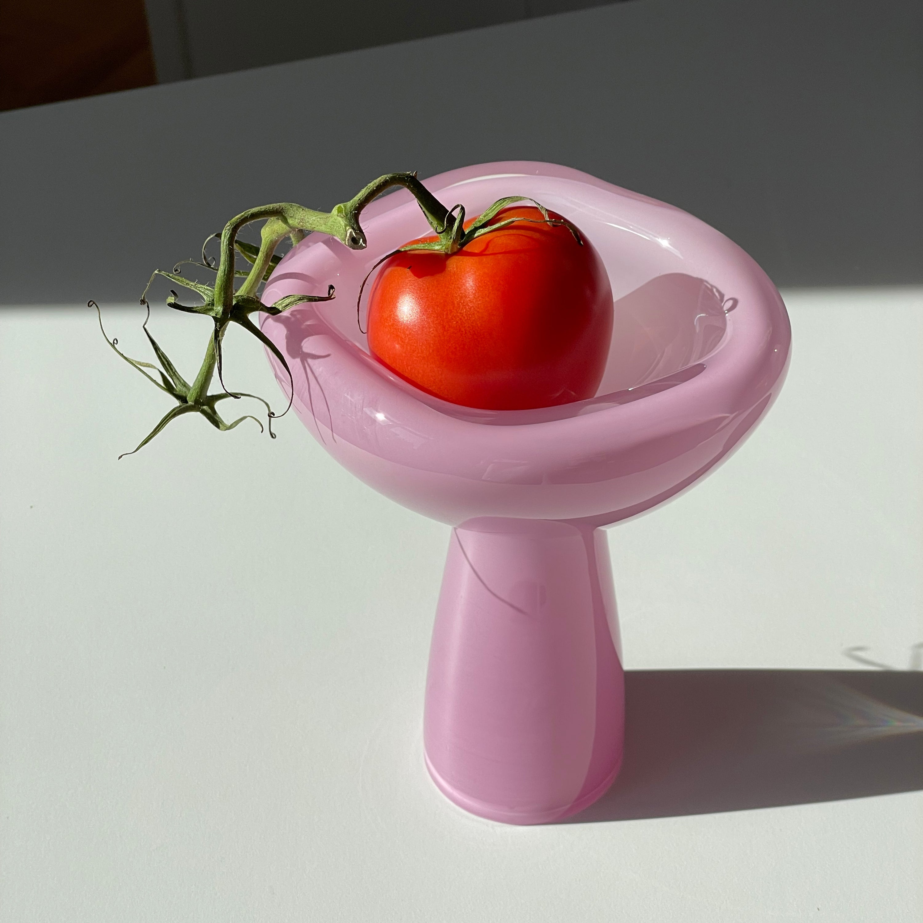 The PHANTOM dish is inspired by wind shaping nature. Integrating these thoughts into the manufacturing process each vessel is formed by the the exhaling and inhaling of the glassblower. By allowing the material and air to dictate the form and accepting the process, we have partly let go of the final outcome. Each piece is one of a kind and unique in shape.