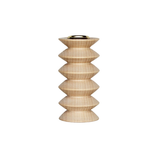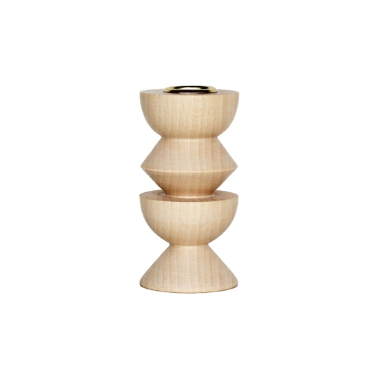 This contemporary and eye-catching wooden candle holder is handmade from solid beech wood. The wood is finished with a protective eco-varnish and finished with a brass insert to securely hold a candle. The candle holder is handmade in Portugal through the process of wood turning. The candle holder is part of the totem candle holders family which consist of 15 different shape and sizes. Also great to combine with out Totem inspired picture and postcard stand. The candle holders are inspired by the native American totem pole, translated into modern yet practical and decorative home accessory.