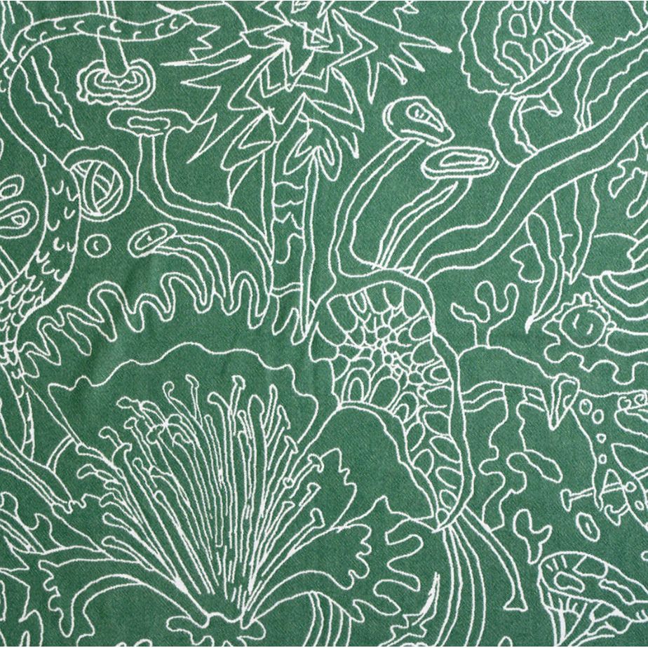 The towel illustrates a lush jungle foliage, with dark green hues and whimsical sea and land creatures among vibrant leaves. Whether you're lounging under the sun or exploring the coastline, this towel adds a touch of tropical paradise to your seaside experience.