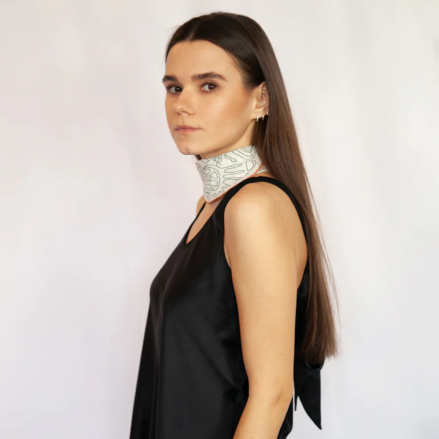 Use our super-smooth silk wrap around your neck, on your bag or as a headscarf, or as a shawl.