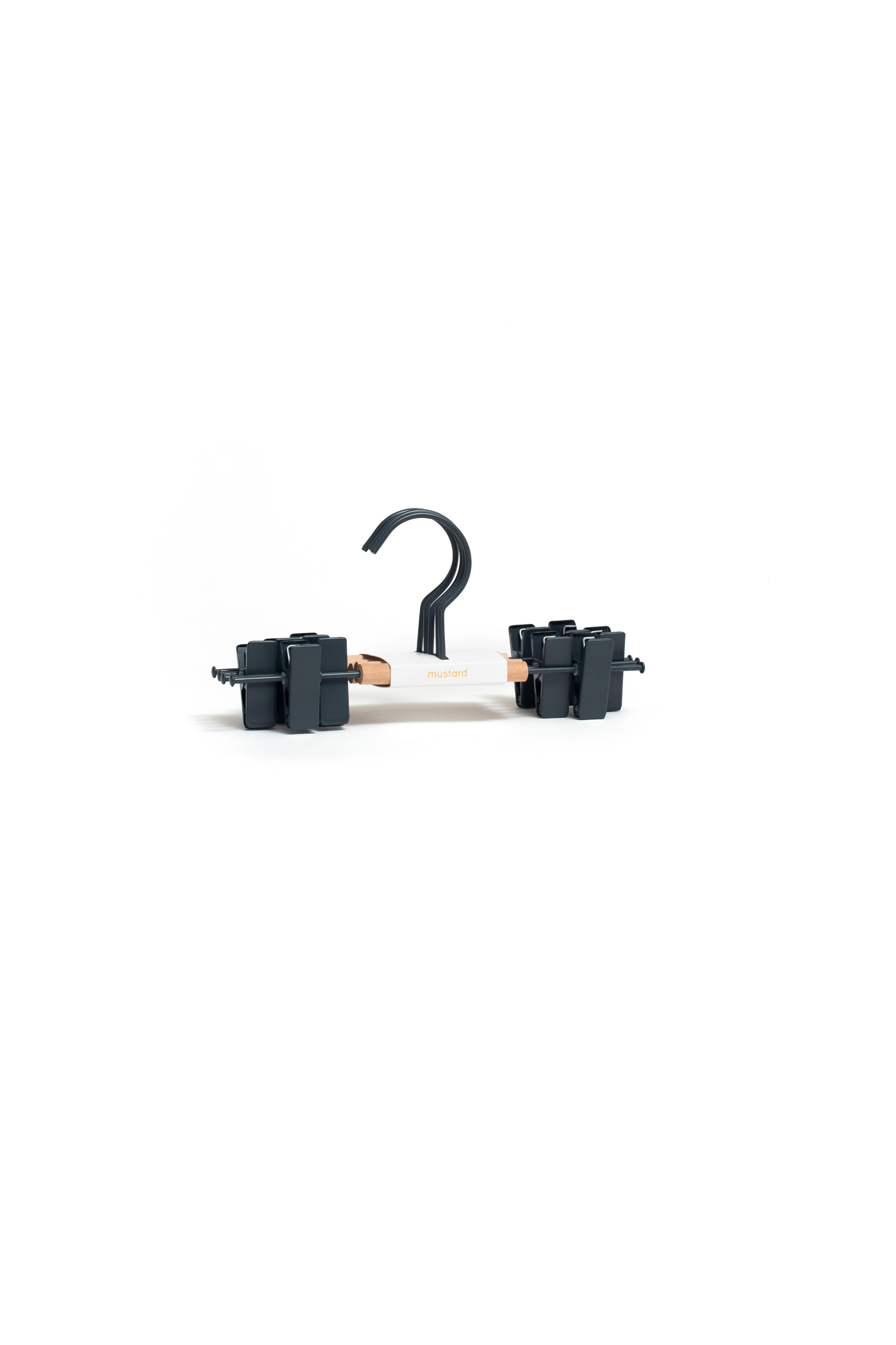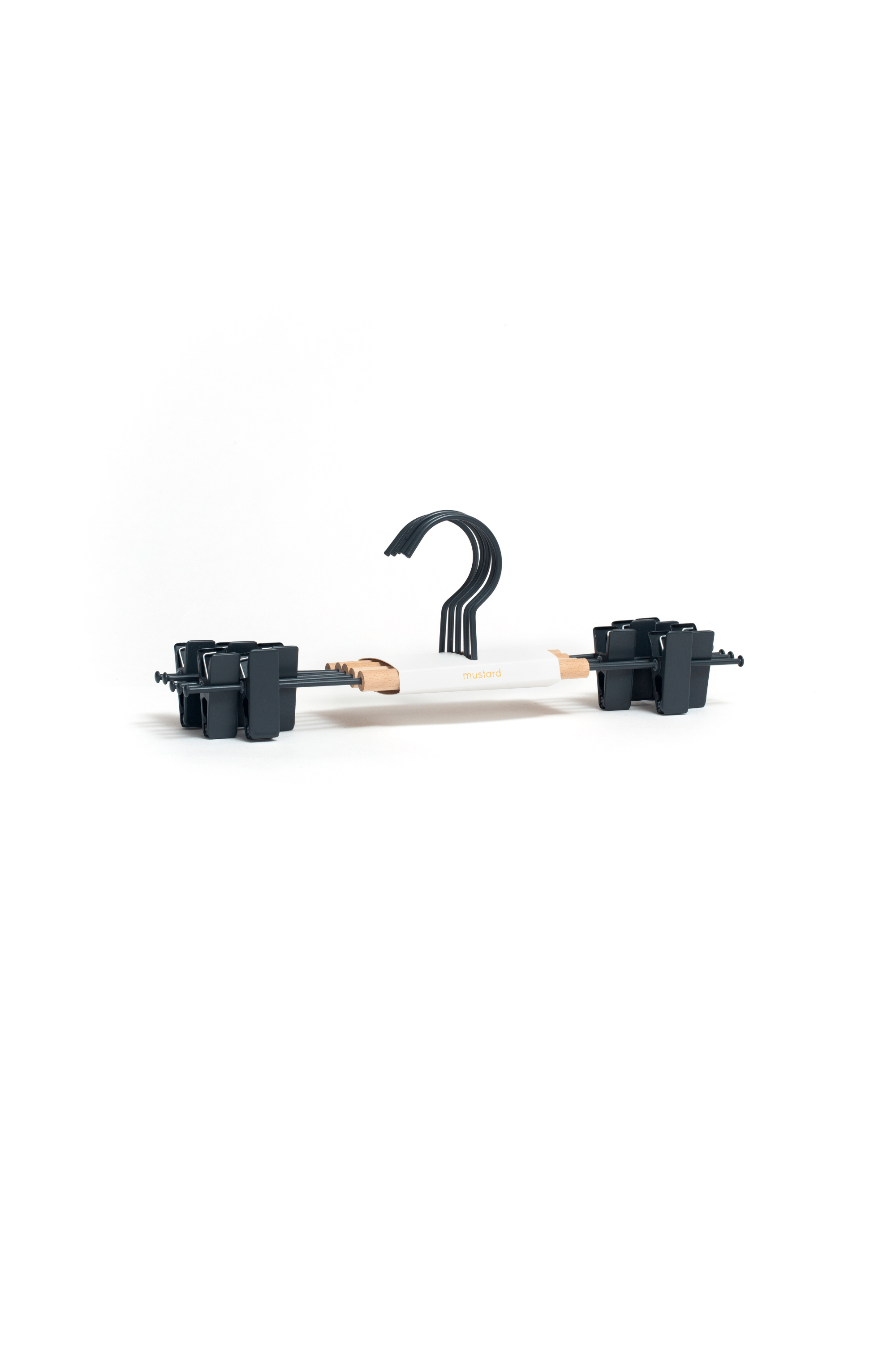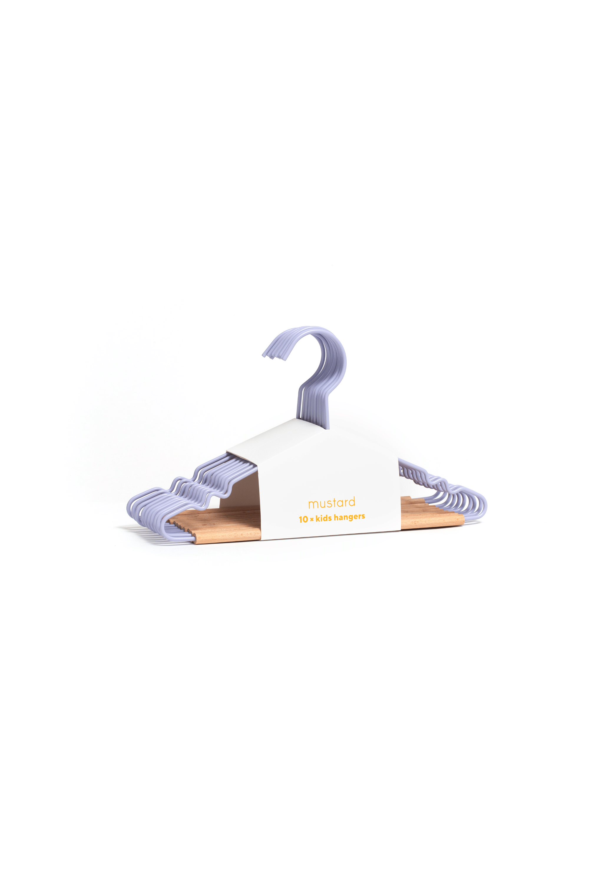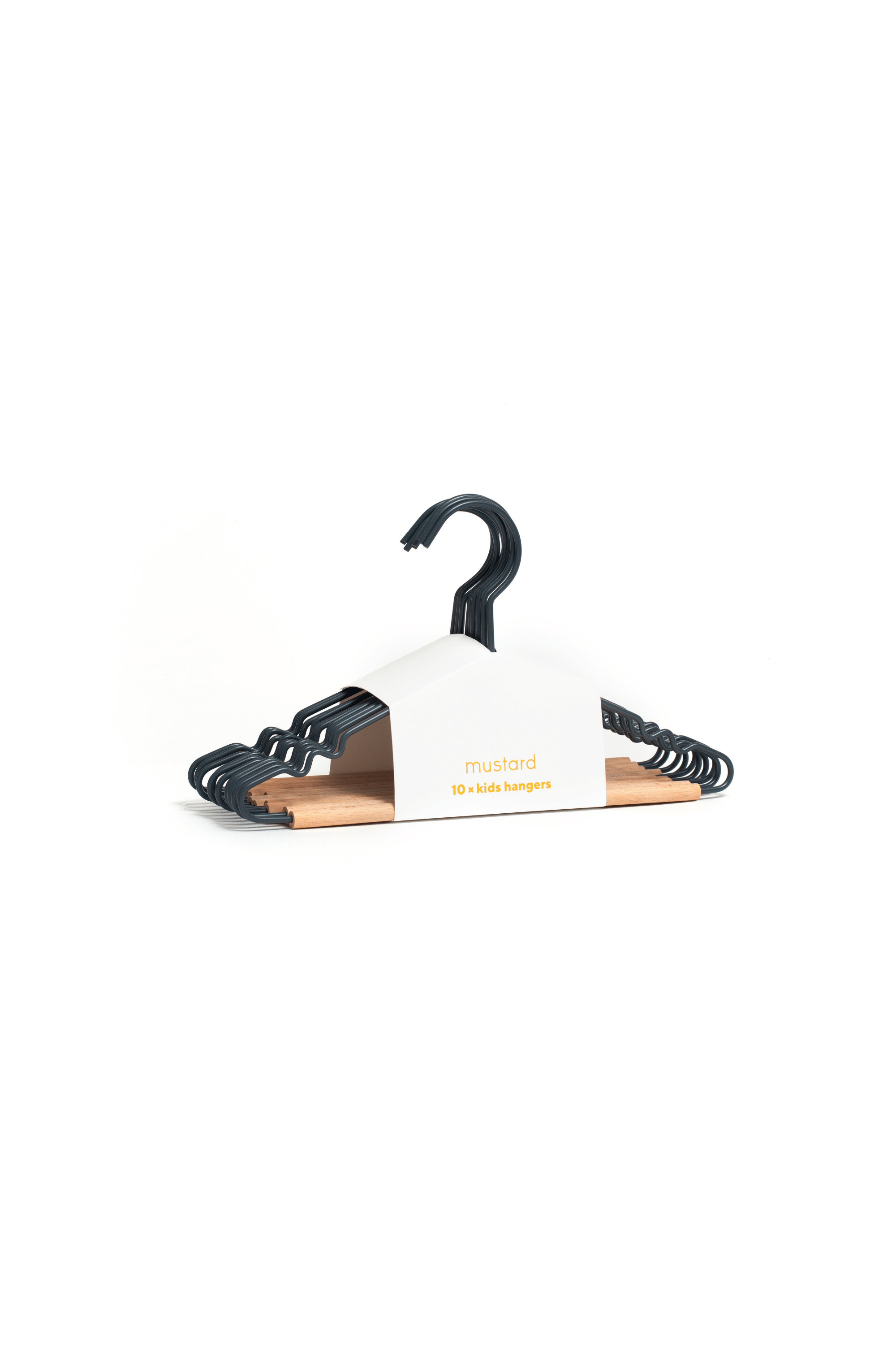 Our fancy hangers have a smooth matte powder-coated finish, a wooden detail and a Mustard signature 'squiggle' on the sides for that added cool factor.