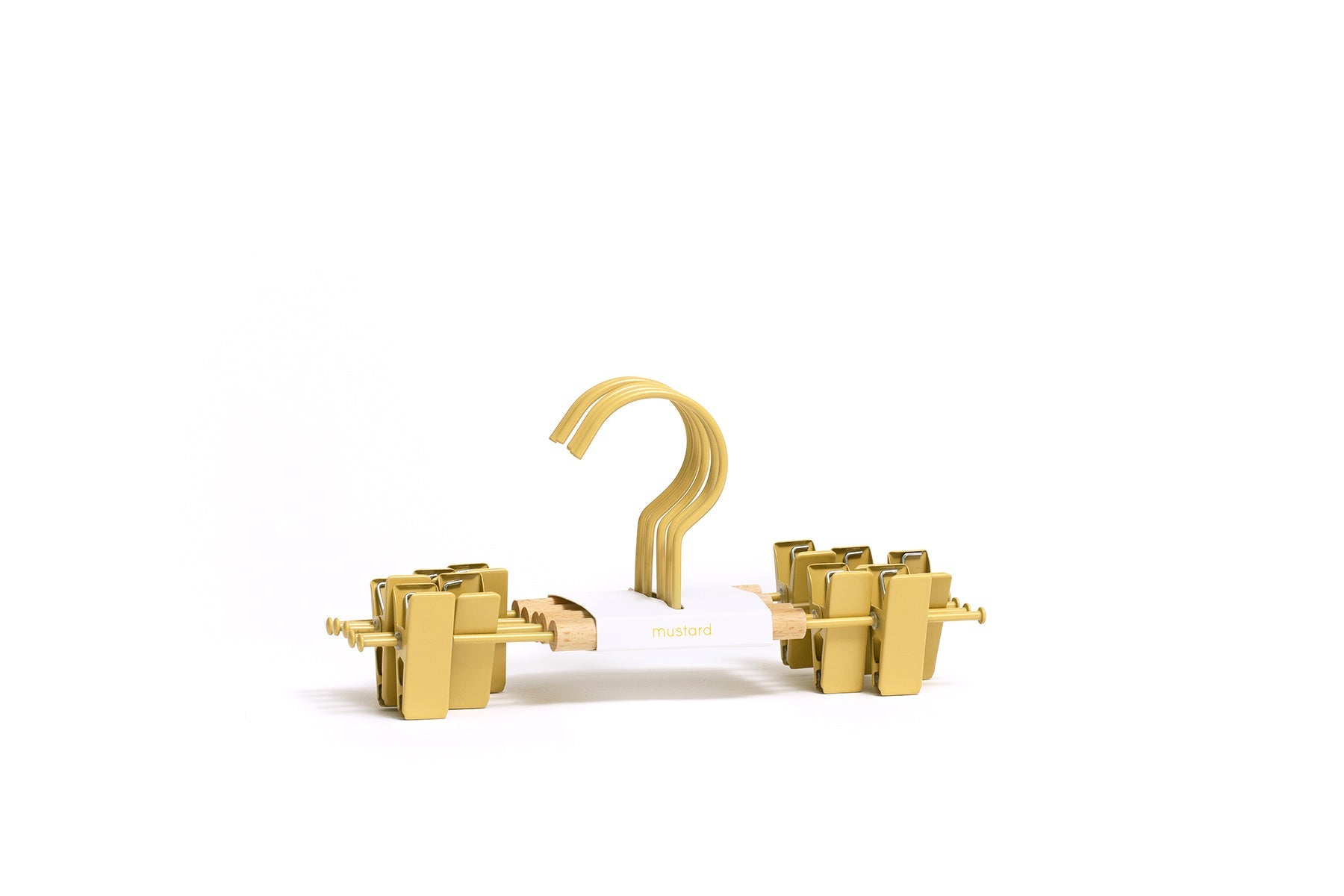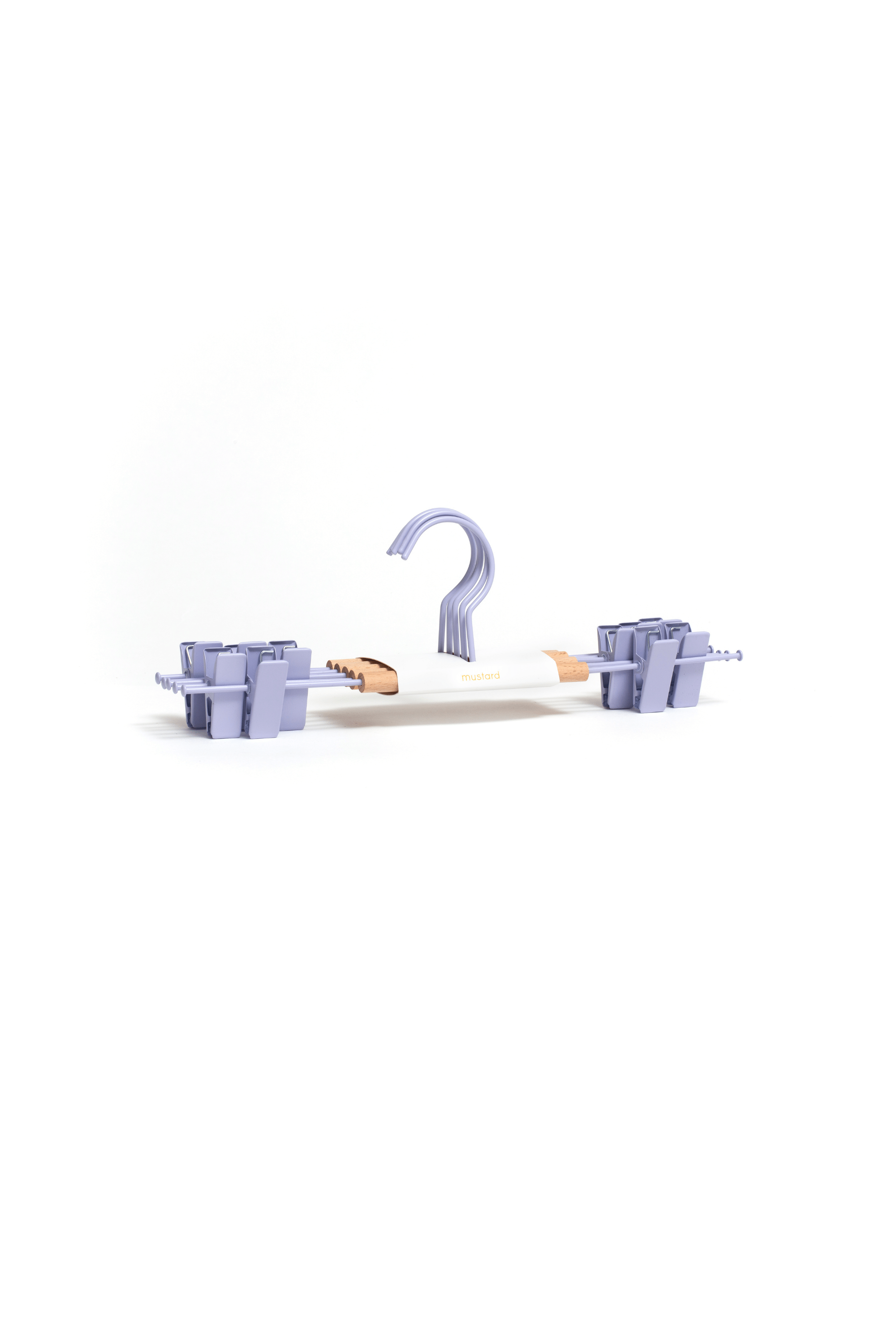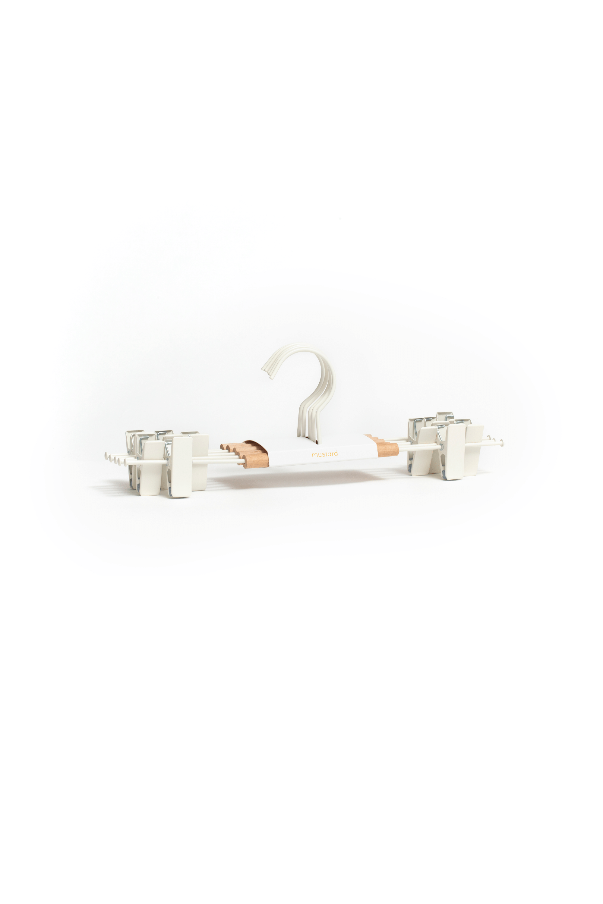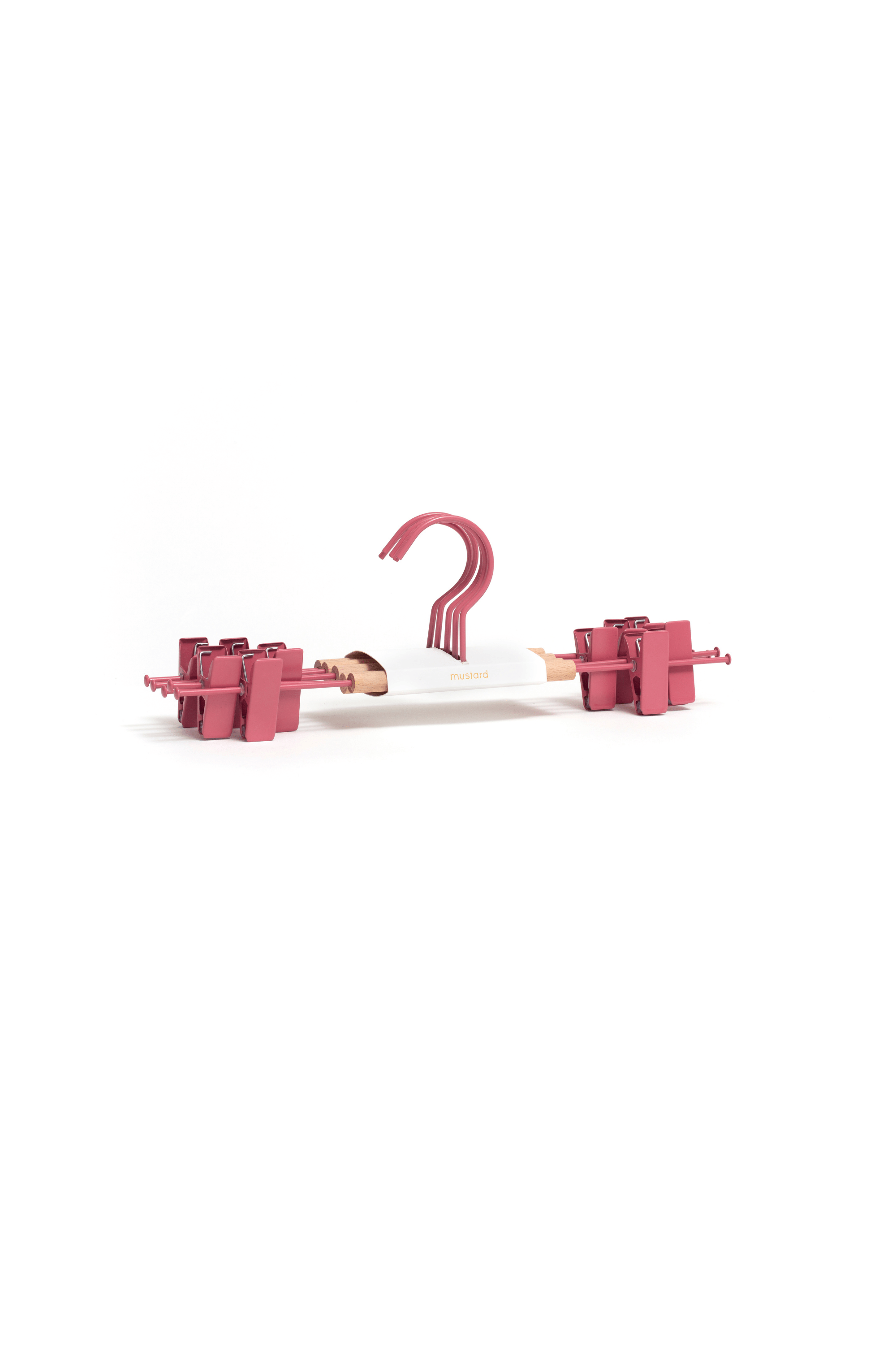 Our fancy hangers have a smooth matte powder-coated finish, a wooden detail and a Mustard signature 'squiggle' on the sides for that added cool factor.