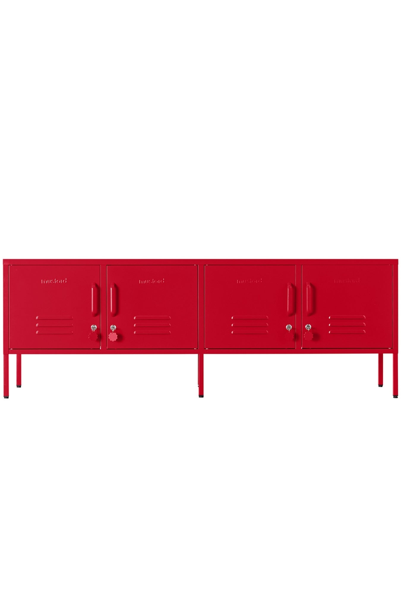 Meet our long + lean four door locker. She’s the ultimate multitasker and your one-stop for storage, whether you use her as a TV unit, entertainment hub, shoe organiser or at the foot of your bed. With two cable holes to keep things tidy and a lock on every door, she’s a console with confidence. It’s time to set the Standard!